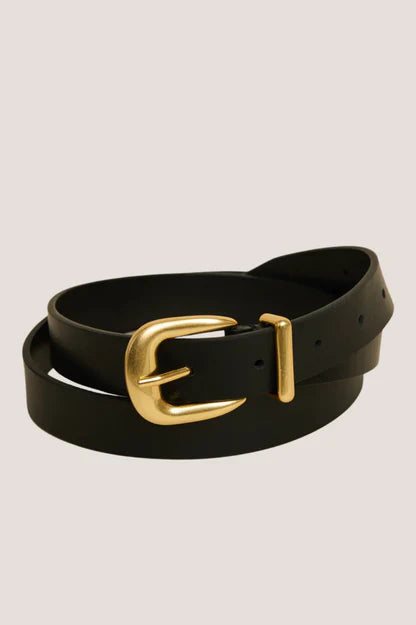 Gold Buckle Black Leather Belt